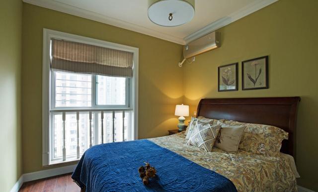 設(shè)計(jì)理念:奶咖綠的墻面配上花鳥(niǎo)的裝飾畫(huà),搭配藍(lán)綠色系的床品讓整個(gè)空間顯得溫馨自熱。