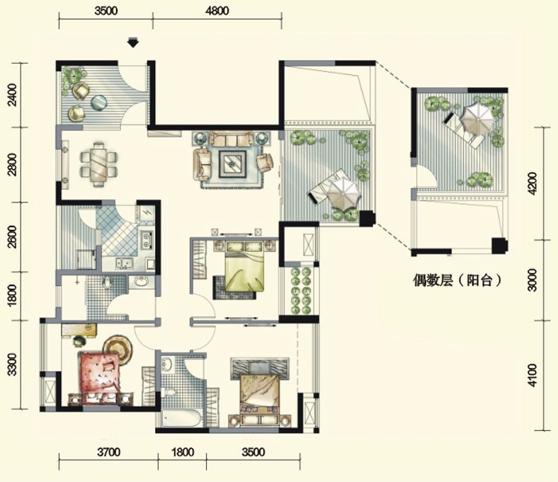 裝修有保障【導(dǎo)讀】設(shè)計(jì)理念:奶咖綠的墻面配上花鳥(niǎo)的裝飾畫(huà),搭配藍(lán)綠色系的床品讓整個(gè)空間顯得溫馨自熱。 戶(hù)型圖展示 主臥 次臥 餐廳 客廳 客廳沙發(fā) 客廳 客廳