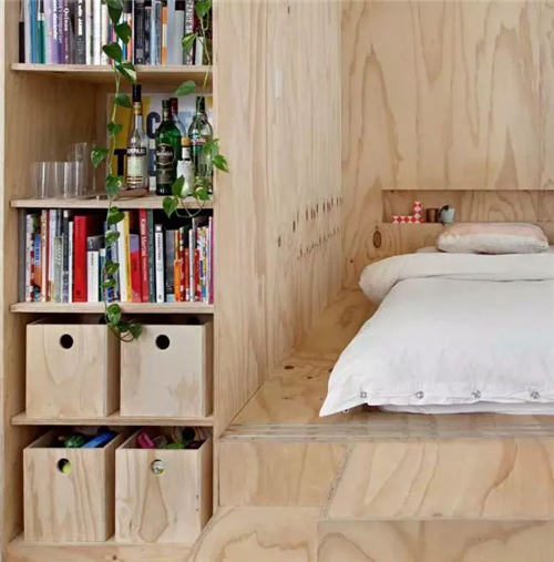 設(shè)計師利用松木復(fù)合板將整個房間劃分出來