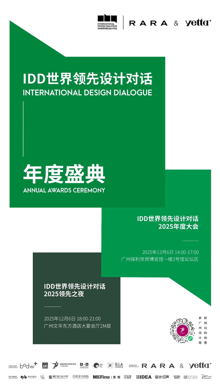 來(lái)廣州設(shè)計(jì)周,洞察國(guó)際設(shè)計(jì)趨勢(shì),交互中國(guó)設(shè)計(jì)出海全球的分享和思考,相關(guān)活動(dòng)包括:2025IAF鋒建筑節(jié)年度盛典、C.D.A值得世界看見(jiàn)的中國(guó)設(shè)計(jì)·2025年度盛典、IDD世界領(lǐng)先設(shè)計(jì)對(duì)話2025年度盛典、WYDF愛(ài)丁世界青年設(shè)計(jì)節(jié)·2025年度盛典、世界的中國(guó)家2025年度盛典、2025亞洲青年設(shè)計(jì)之光年度盛典、GRP中意設(shè)計(jì)金指獎(jiǎng)2025年度盛典、BDA包豪斯現(xiàn)代設(shè)計(jì)獎(jiǎng)·2025年度盛典、ICS色彩空間設(shè)計(jì)大會(huì)暨2025ICS色彩空間設(shè)計(jì)獎(jiǎng)?lì)C獎(jiǎng)典禮……等。